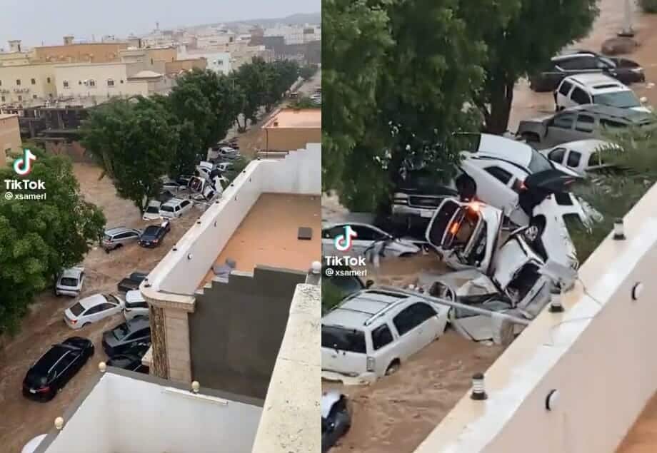 وأظهرت مقاطع فيديو متداوَلة، حجم الدمار الذي طال عدداً كبيراً من السيارات التي غطّتها مياه الأمطار، فيما جرّفت مياه السيول عدداً آخر في الأحياء السكنية.