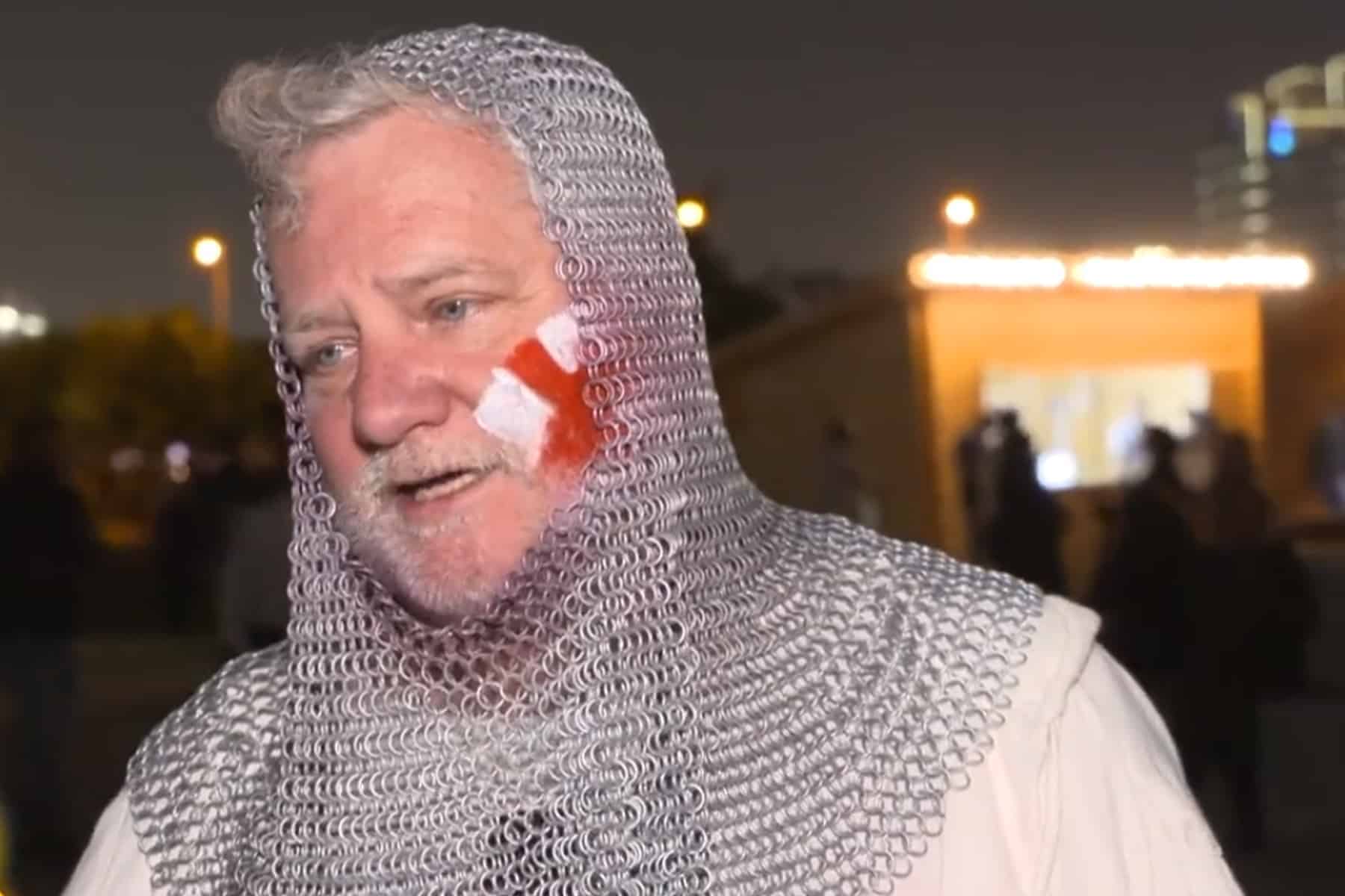 مشجعون إنجليز يرتدون لباس الصليبيين الذين غزو به أرض المسلمين