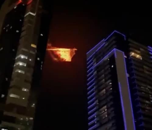 وأظهر الفيديو، مجسما ناريا لما يُشبه النسر وهو يحلق في السماء على مسافة بعيدة.