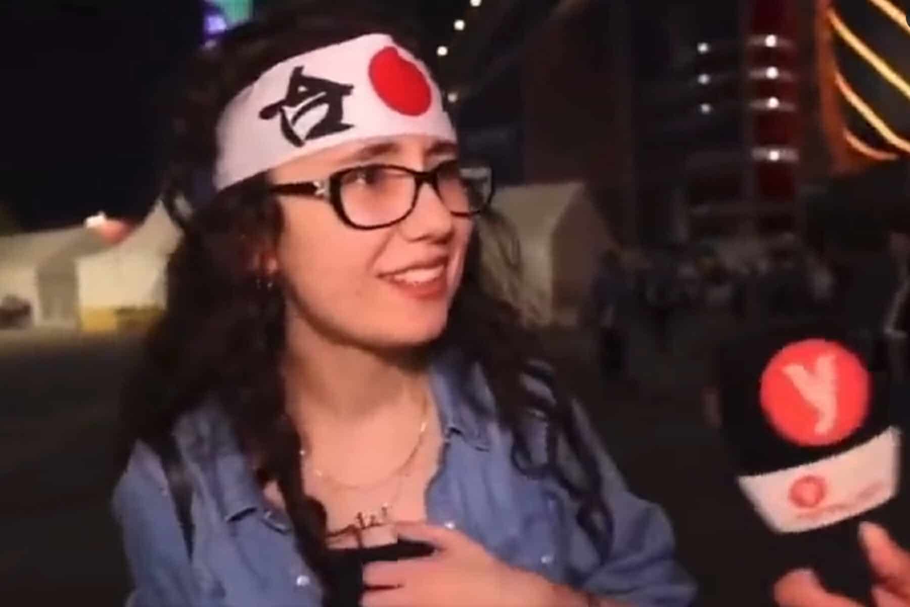 وبينما كانت الشابة اليابانية تعبر من أمامه، اعترضها المراسل الإسرائيلي راز شاشنيك ليحظى ويفوز ربما بتصريح بلقاء مع أحدهم، عقب رفض المشجعين العرب الحديث معه.