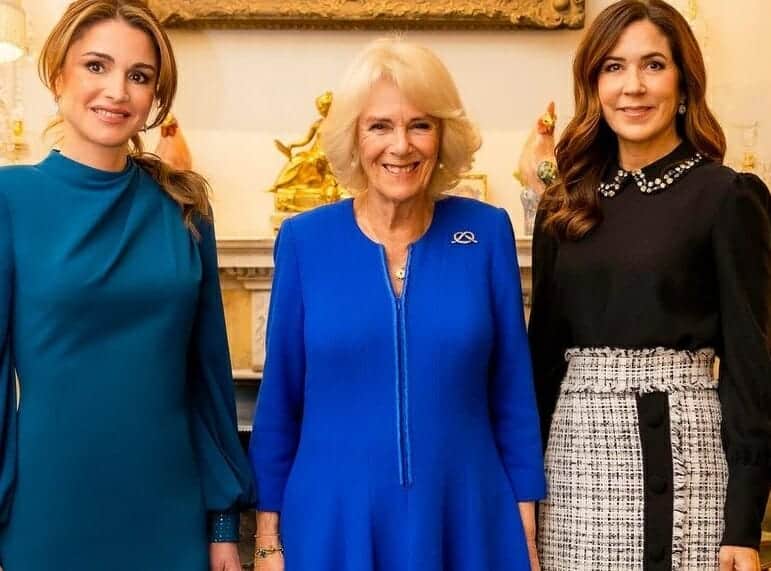 وطن– استضافت الملكة كاميلا، الملكة رانيا ملكة الأردن، وولي العهد الأميرة ماري من الدنمارك، في كلارنس هاوس، يوم الاثنين، قبل حفل استقبال في قصر باكنغهام مساء اليوم.