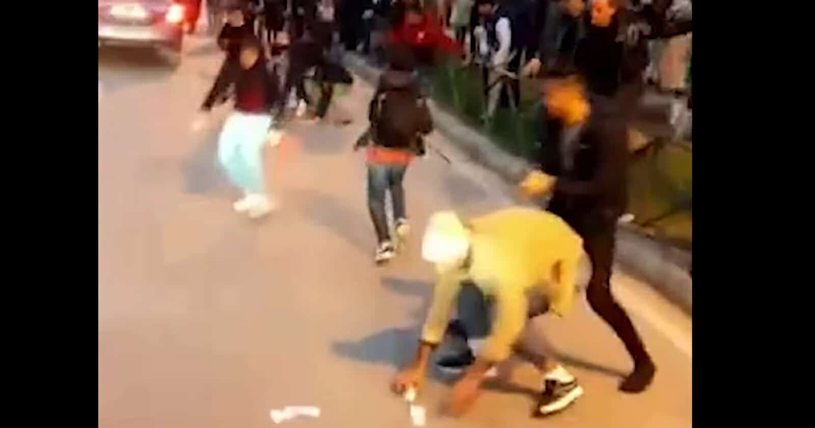 الفيديو أظهر الشخص وهو يلقي الأموال على الأرض، بينما همَّ كثيرٌ من الحاضرين في المشهد بالتسارع من أجل تلقّف تلك الأموال.