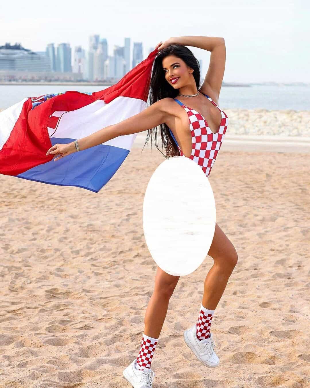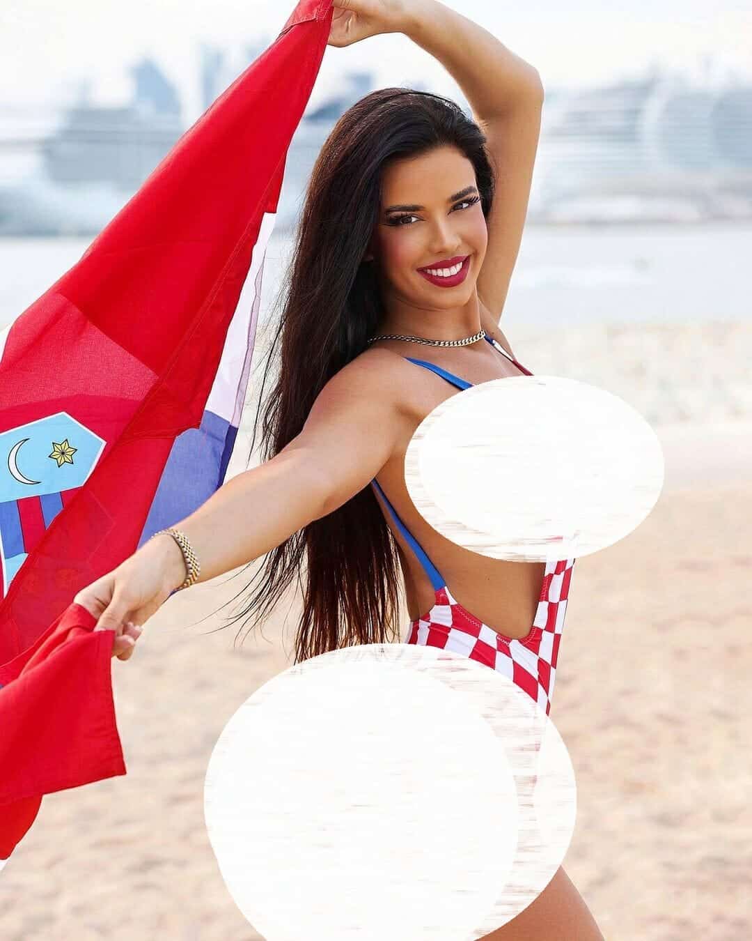 ونشرت ملكة جمال كرواتيا صورة لها عبر حسابها على “انستجرام”، وهي ترتدي ملابس البحر، بألوان علم بلادها.