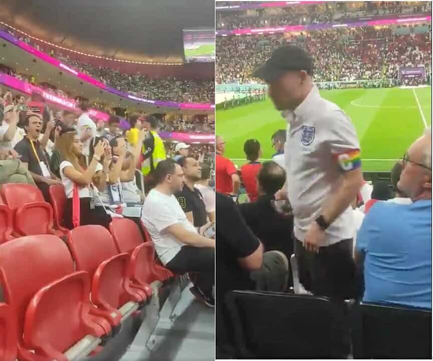 وأظهر الفيديو لحظةَ قدوم الأمن للمشجع الإنجليزي واستدعائه، وذلك عقب رصده مرتدياً شارة المثلية الجنسية على ذراعه اليسرى.
