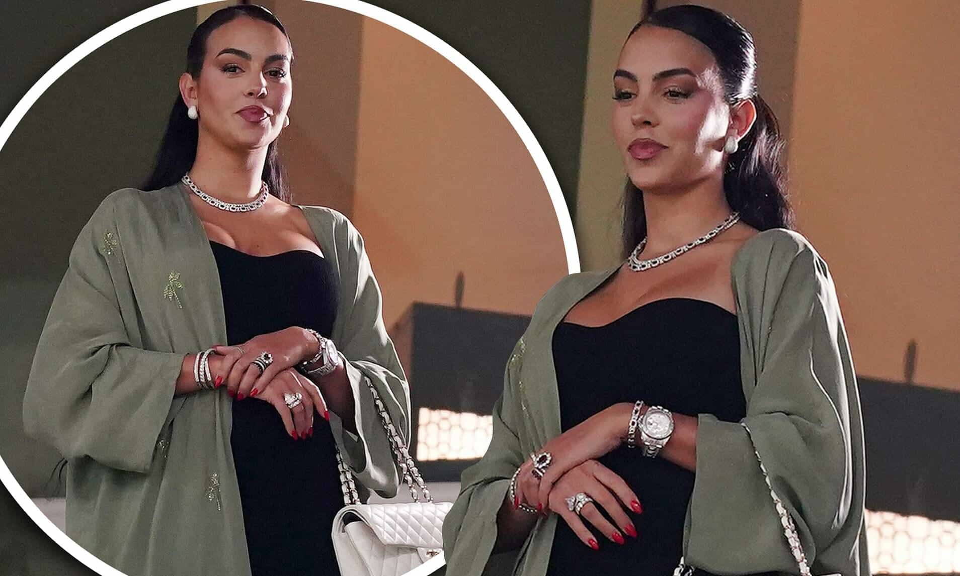 ارتدت جورجينا أيضًا معطفًا كاكيًا لهذا الحدث، وسرّحت شعرها الأسود في شكل ذيل حصان.