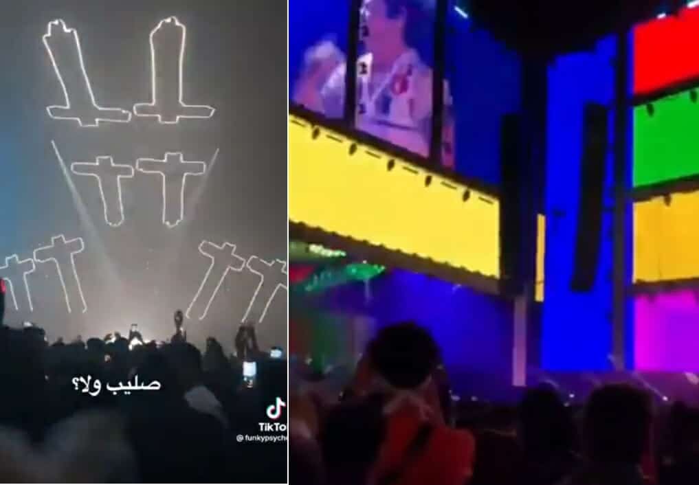 كما تداول الناشطون مقطع فيديو يرصد اعتماد القائمين على تنظيم الحفل برسم شعار يشبه “الصليب” في السماء، ما أثار اندهاش الحاضرين.
