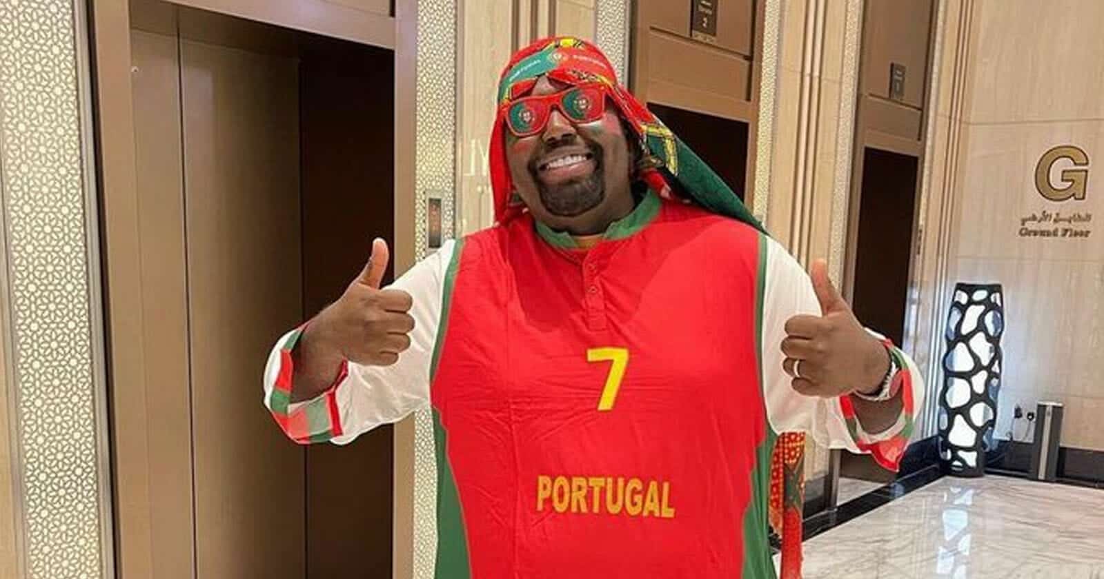 وهو ما استجاب له “مجومبا” بالفعل، وظهر في مدرجات استاد الثمامة وهو يرتدي تيشرت المنتخب البرتغالي.