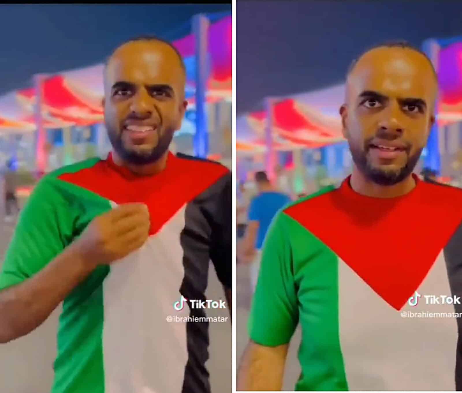 وطن– انتشر مقطع فيديو، وُصف بالمؤثر جداً، لمشجع عماني في بطولة كأس العالم، وهو يرتدي ثياباً ملونة بأعلام دولة فلسطين.