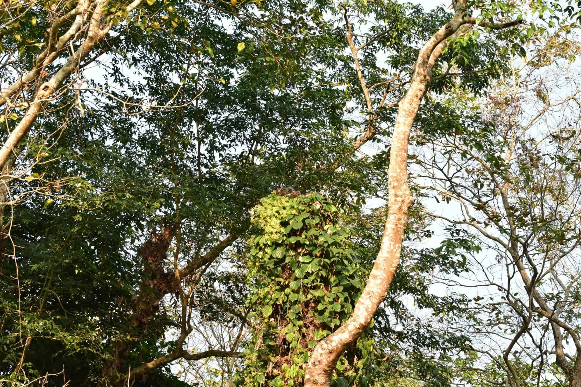 قد لا تمكنك الأوراق الكثيفة للغاية من اكتشاف الأفعى، لكنها وبحسب ما قال الموظف في تعليقه على الصورة بانها تتربع على الشجرة من أعلى.