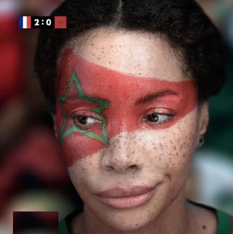 وكٌتب على الصورة 2 -0 في إشارة إلى خسارة أسود الأطلس، أمام فرنسا.