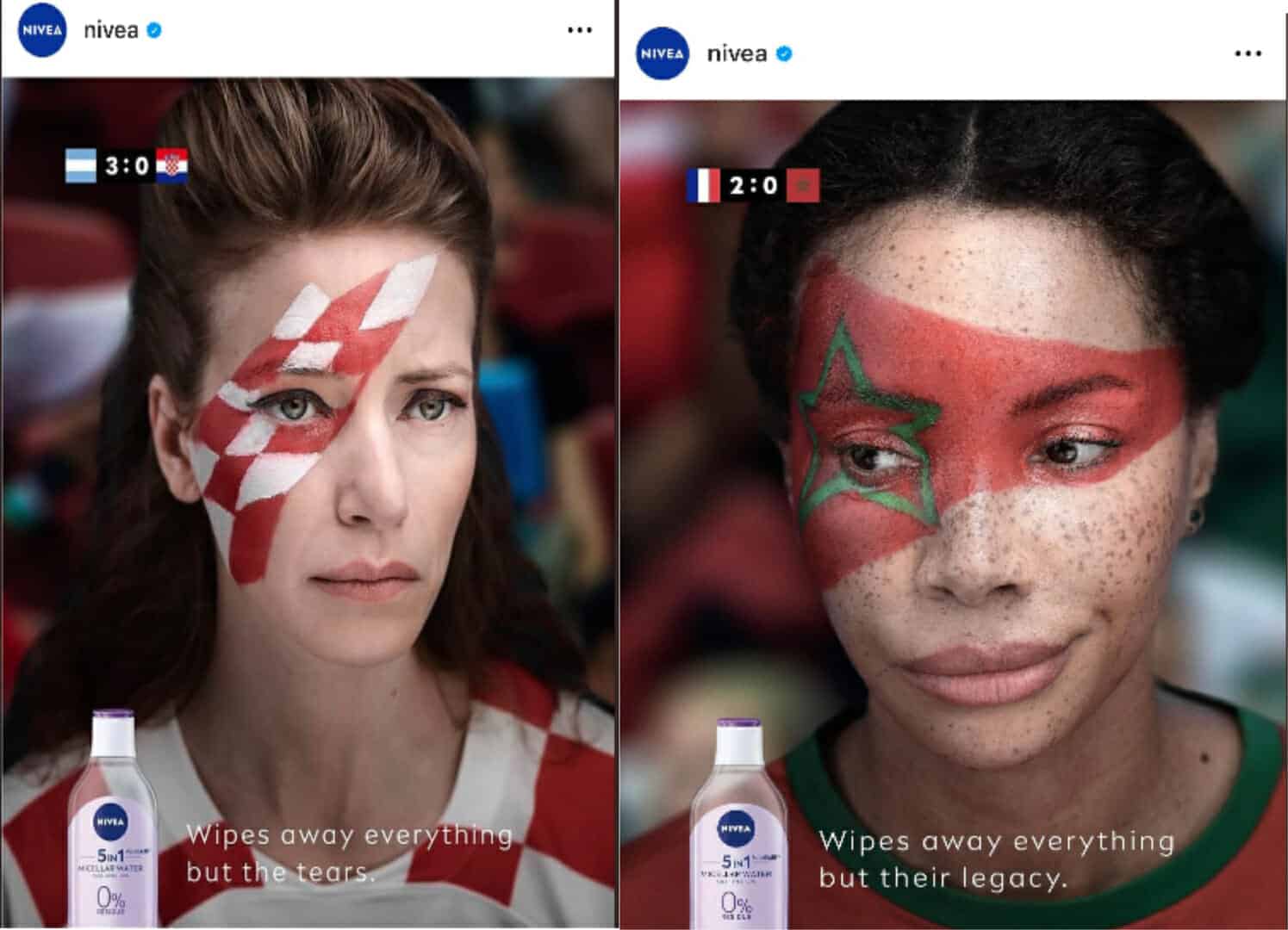 حيث قامت شركة نيفيا بإطلاق حملة إعلانية للترويج لمنتج جديد يزيل المكياج، مستغلة صورة مشجعة مغربية في مونديال قطر 2022.