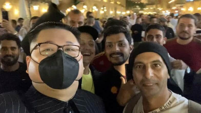 وطن- ظهر “هاورد إكس” شبيه زعيم كوريا الشمالية، كيم جونغ أون، أمام أحد الملاعب التي تقام فيها مباريات كأس العالم، وقد خطف أنظار آلاف المشجعين.