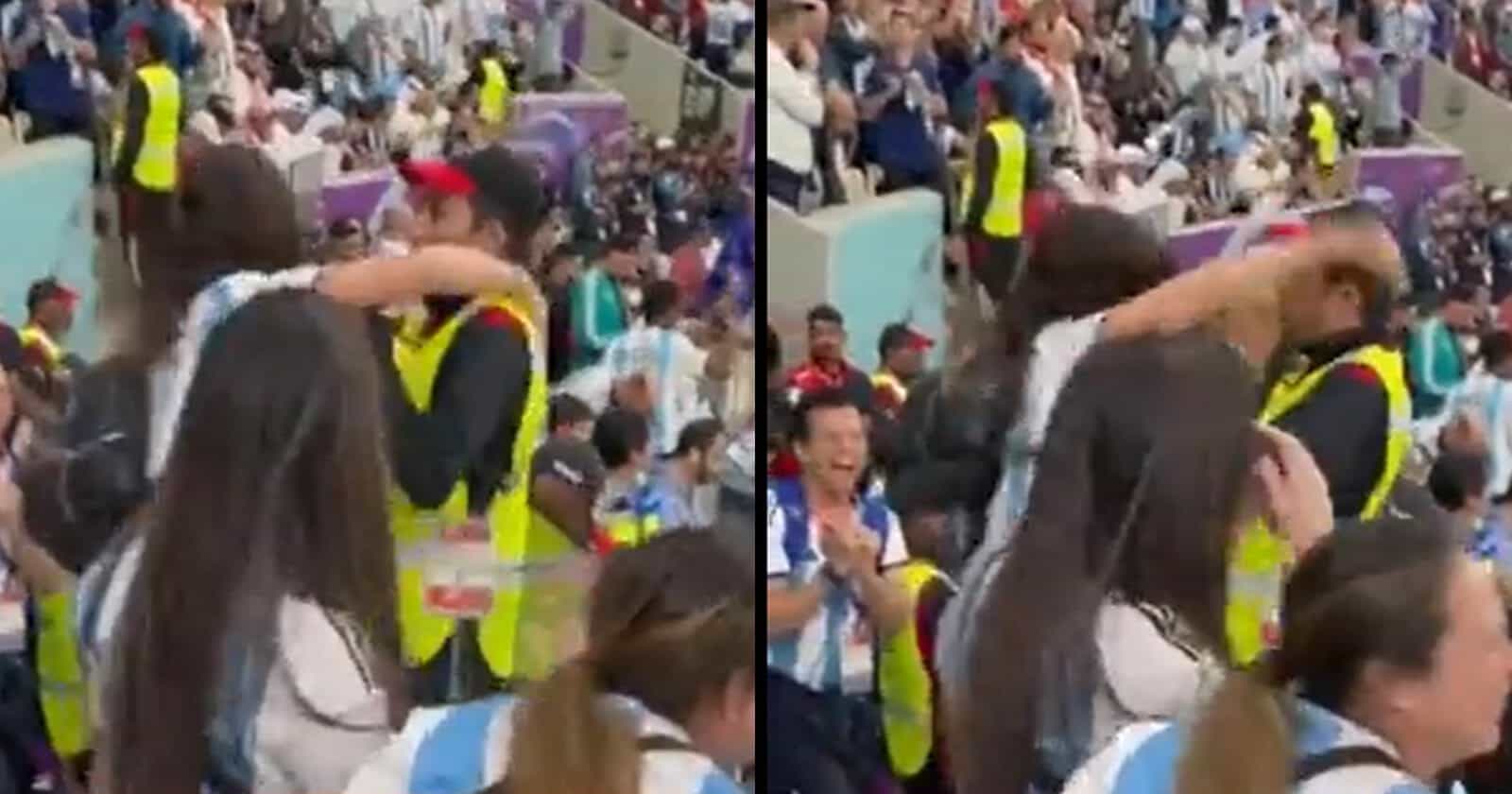 وأظهر مقطع فيديو تمّ تداوله على نطاق واسع، المشجعة الأرجنتينية وهي تهجم على عنصر الأمن وتقوم باحتضانه بشكل عنيف.