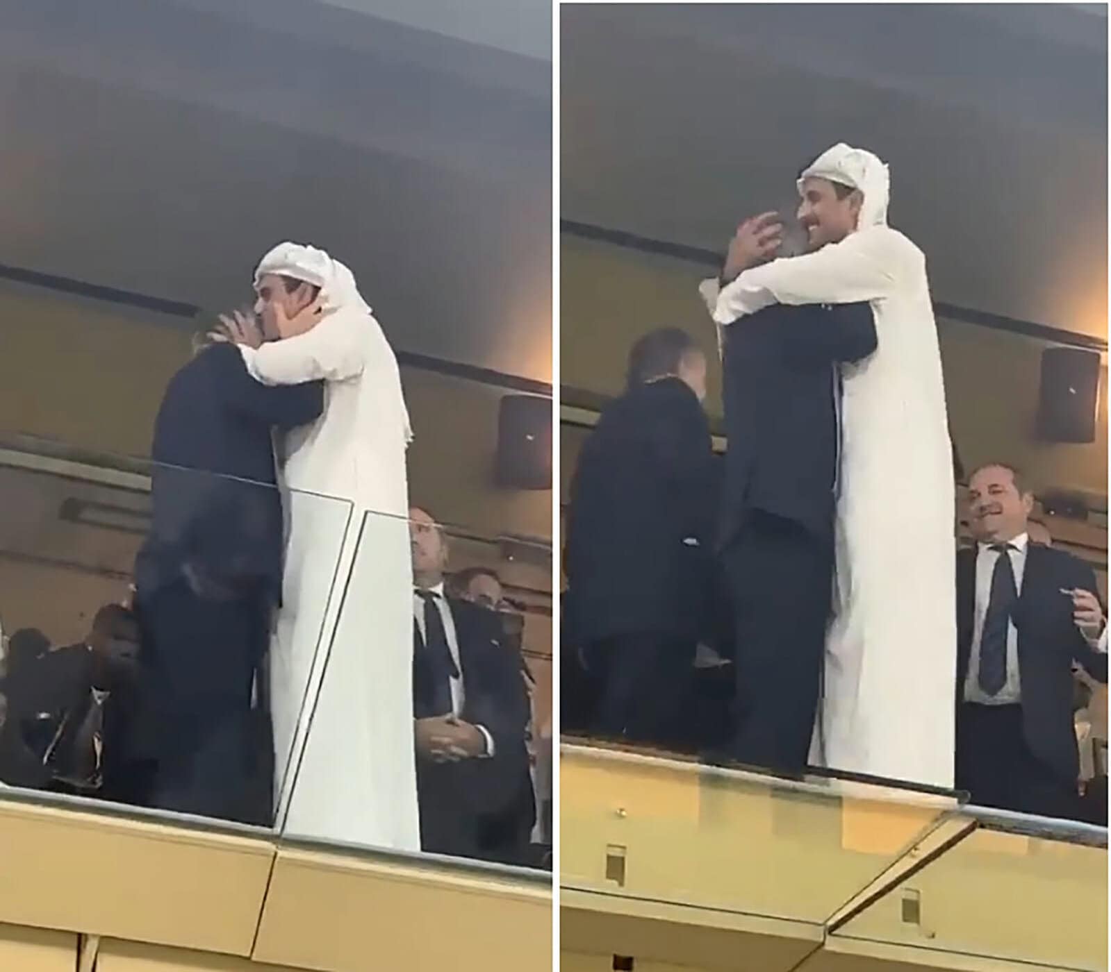وتبادل أمير قطر الشيخ تميم بن حمد مع المبعوث الأرجنتيني الأحضان بقوة، قبل أن يمسك برأسه ويحرّكها في الاتجاهين، تعبيراً عن فرحته الكبيرة بفوز المنتخب الأرجنتيني، قبل أن يطبع قبلة على جبينه.