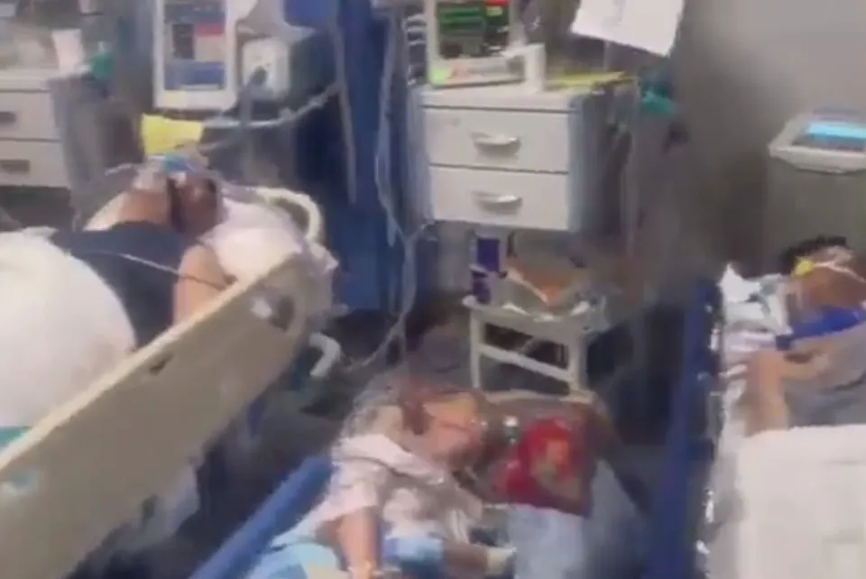 وتظهر صورة أخرى جثثاً مكدّسة على الرفوف والصناديق في غرفة تخزين بالمستشفى، مع نفاد المساحة في مواجهة الموت المتزايد.
