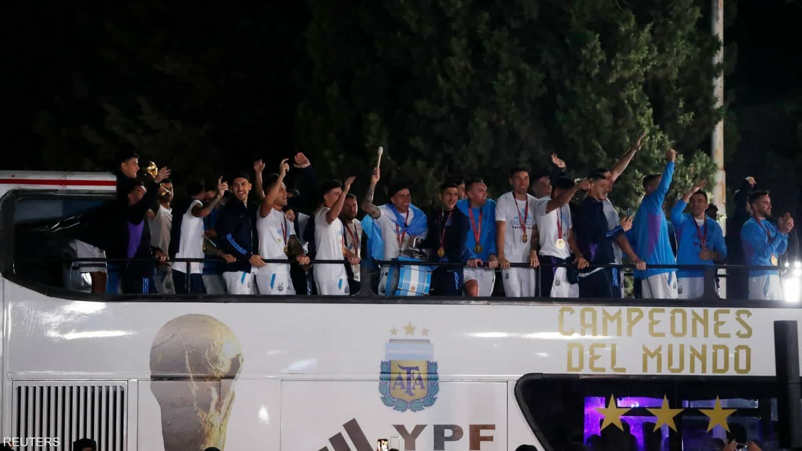 وبمجرد نزول اللاعبين، توجّهوا مباشرة إلى حافلة مكشوفة كانت تنتظرهم على مدرج المطار لنقلهم إلى مقر الاتحاد الأرجنتيني لكرة القدم.