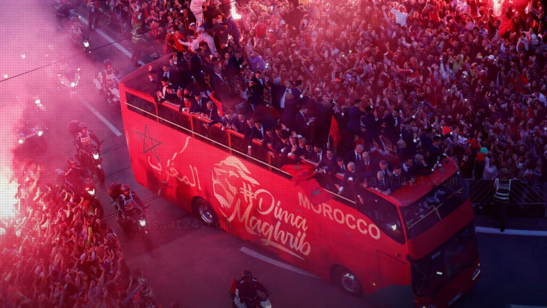 وبعد وصولهم مباشرة إلى المطار، صعد لاعبو المغرب إلى حافلة مكشوفة لتجوب مختلف شوارع العاصمة الإدارية، أمام هتافات الأنصار الذين كانوا في الموعد، من أجل تقديم التحية للاعبين على أدائهم المبهر في الحدث العالمي.
