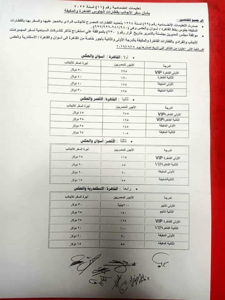 ولم تكتفِ السكة الحديد بإجبار الأجانب على الدفع بالدولار؛ بل كان الأمر أكثر من ذلك، حيث أظهرت قائمة الأسعار أنّ تكلفة سفر الأجنبي عبر القطارات ستكون أكبر بخمسة أضعاف عن تكلفة سفر المصري.