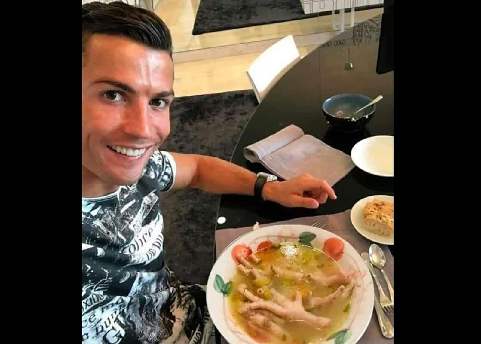 وظهر النجم البرتغالي، هو يتناول طبقاً من لحم الدجاج والخضراوات، في حين تم استبدال هذا الطبق بطبقٍ من حساء أرجل الدجاج في المنشور المضلل للمعهد القومي للتغذية.