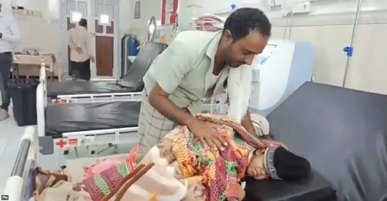 وشوهد في مقطع الفيديو، طفل صغير وهو يتألم من شدة المرض، ويصرخ دون أن يجد أحدٌ شيئاً لفعله له.