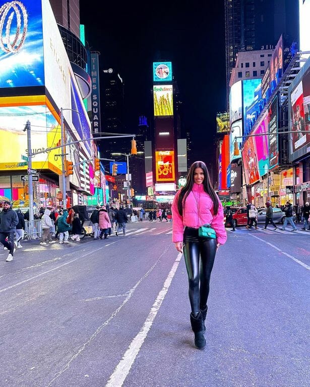 أما بالنسبة إلى إيفانا، فقد كانت محطتها التالية تايمز سكوير. حيث التقطت صورة ونشرتها عبر انستجرام، وكتبت في التعليق: “مرحبًا نيويورك”.