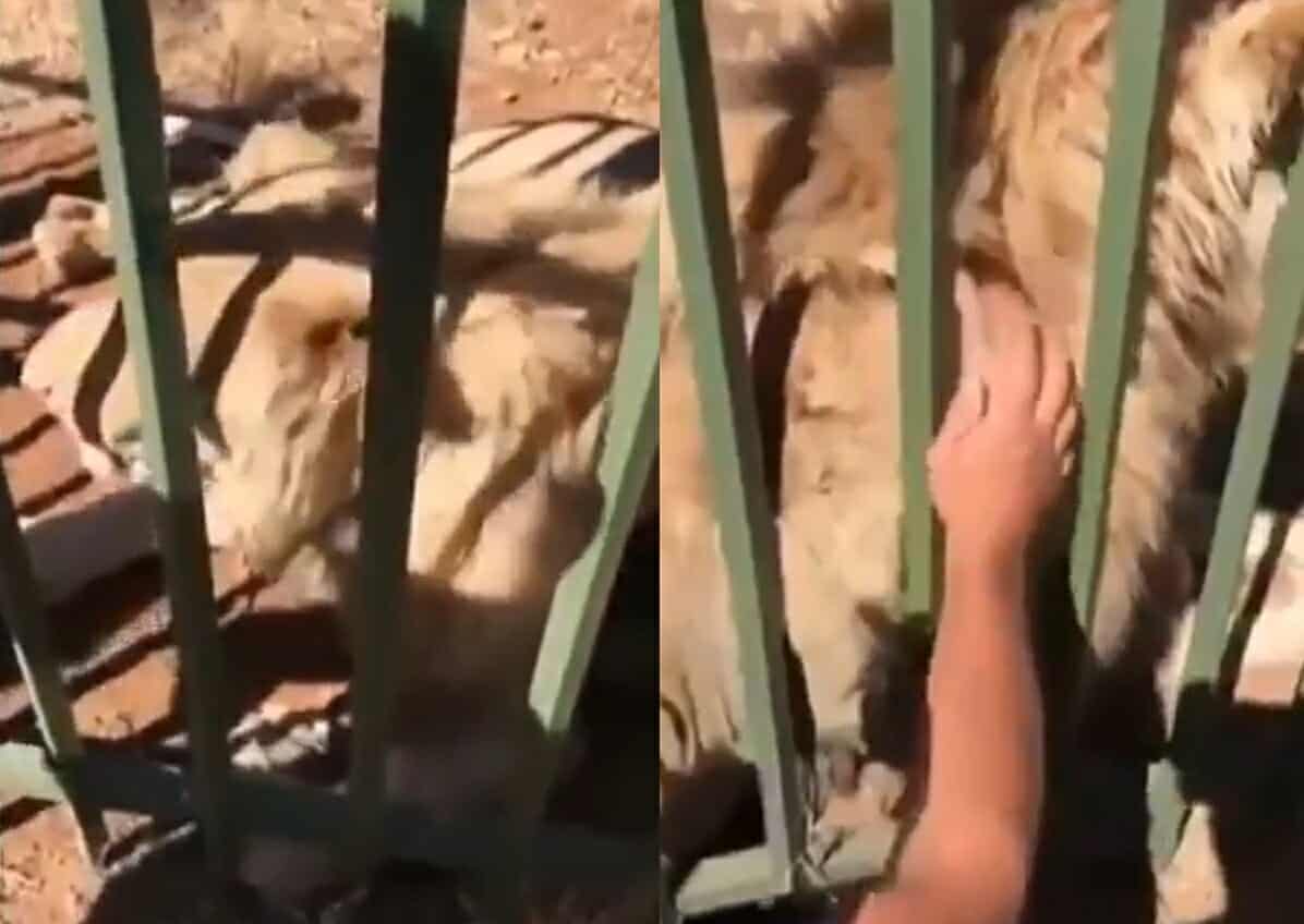 فبينما كان الرجل يحاول أن يداعب أسد في قفص داخل حديقة الحيوانات، فاجأه الأسد بردة فعل غير متوقعة، حيث تمكن من عضّ يد الرجل وسحبها باتجاهه بقوة.