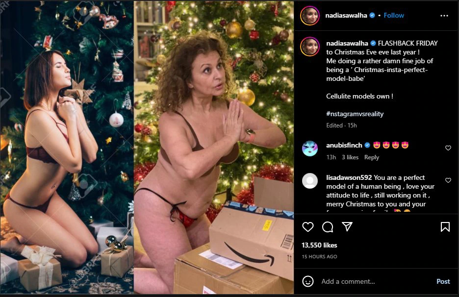 وقالت إحدى المتابعات: “هذه أنا” بينما أدلى آخرون بتعليقات من بينها: “شكرًا لك يا ناديا على إبقائها حقيقية” و “تمامًا نادس ، لا أستطيع حتى أن أنظر إلى نفسي في المرآة … لكن تبدين جميلة دائمًا … أحتاج إلى بناء ثقتي. ”