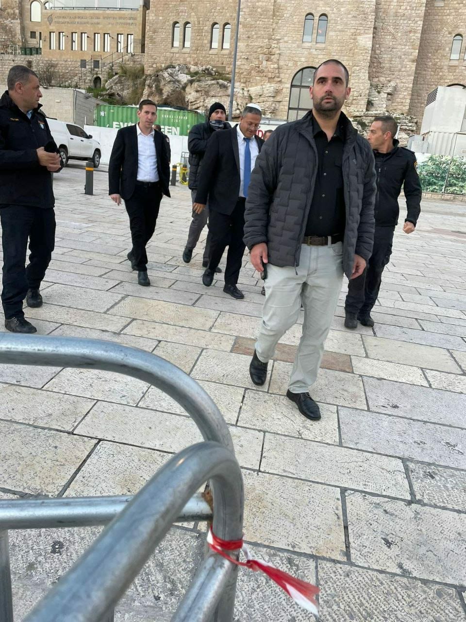 ووصل المتطرف بن غفير في ساعات الصباح الباكر إلى ساحة البراق، وسط حراسة مشددة من شرطة الاحتلال الإسرائيلي.