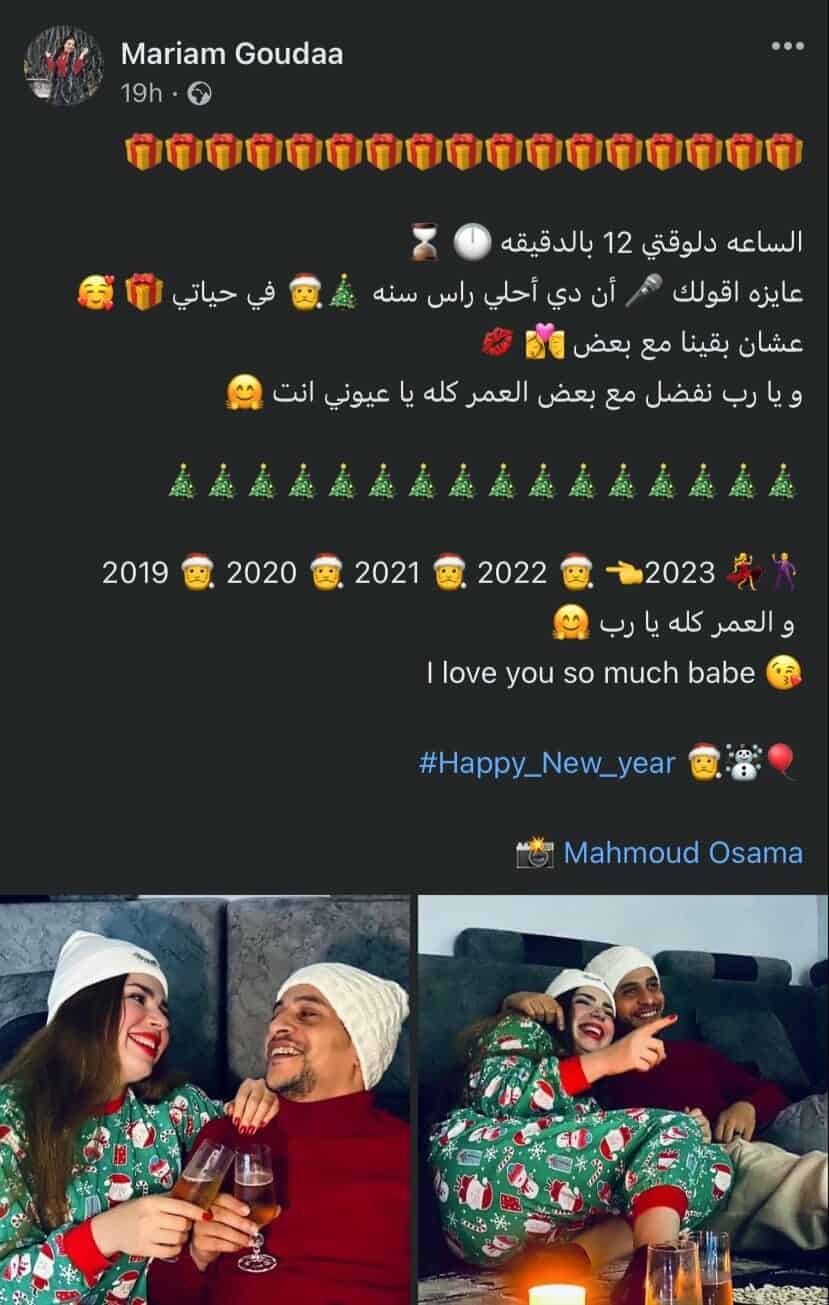 حتى أن المنشور الذي كانت تحتفل به مريم جودة مع زوجها محمد عبداللطيف (37 عاماً)، في رأس السنة، اختفى أيضاً.