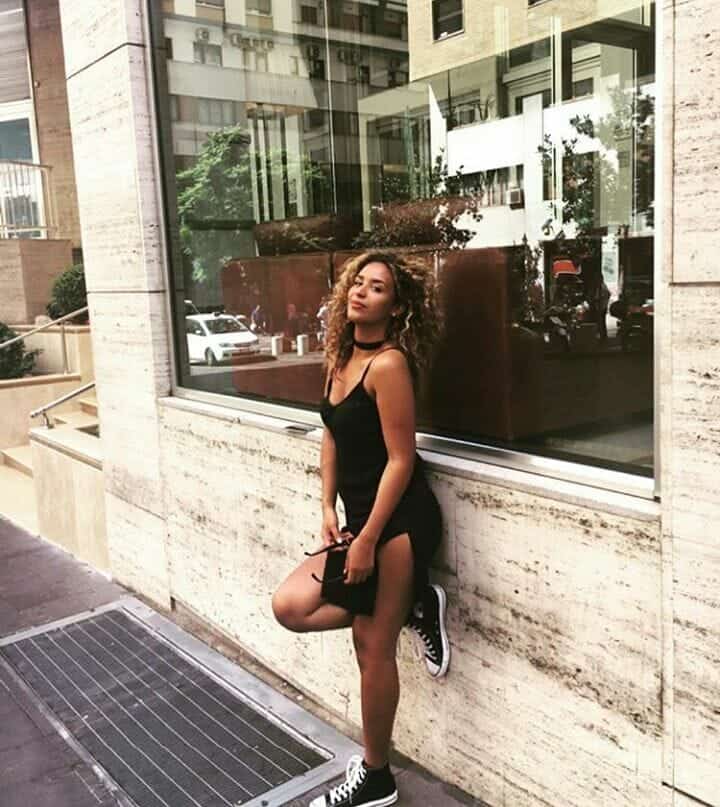 واستكملت هبة إطلالتها بحذاء رياضي أبيض.