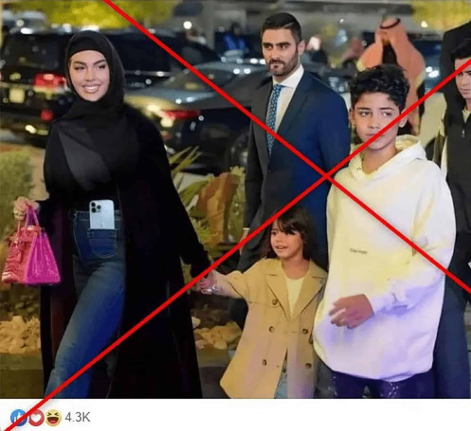 وفي هذا السياق تداول ناشطون على مواقع التواصل الاجتماعي صورةً ادعى ناشروها أنها تظهر جورجينا رودريغيز مرتديةً الحجاب إثر وصولها إلى السعوديّة بعد انضمام كريستيانو رونالدو لنادي النصر.