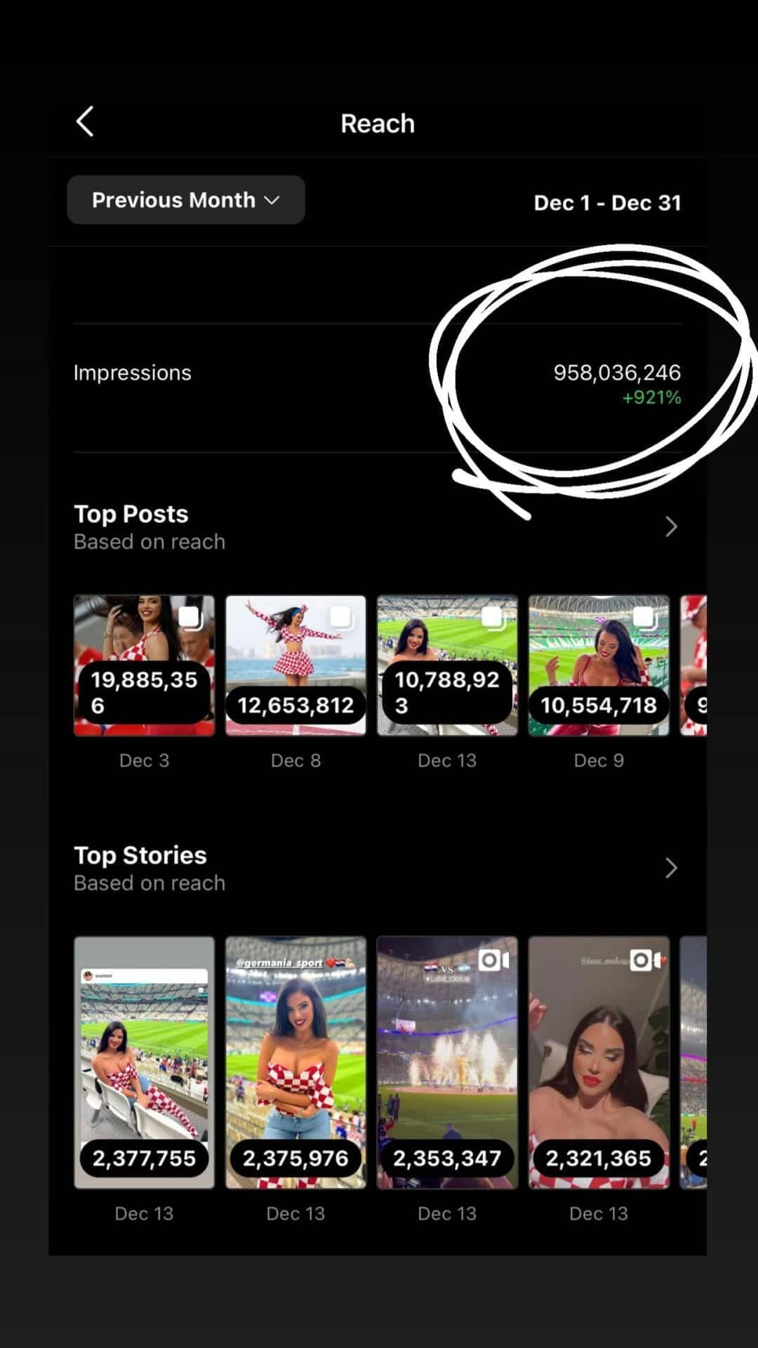 وكتبت ملكة جمال كرواتيا: “تقريبا 1 بليون انطباع على انستجرامي في شهر واحد.. هذا جنون”.