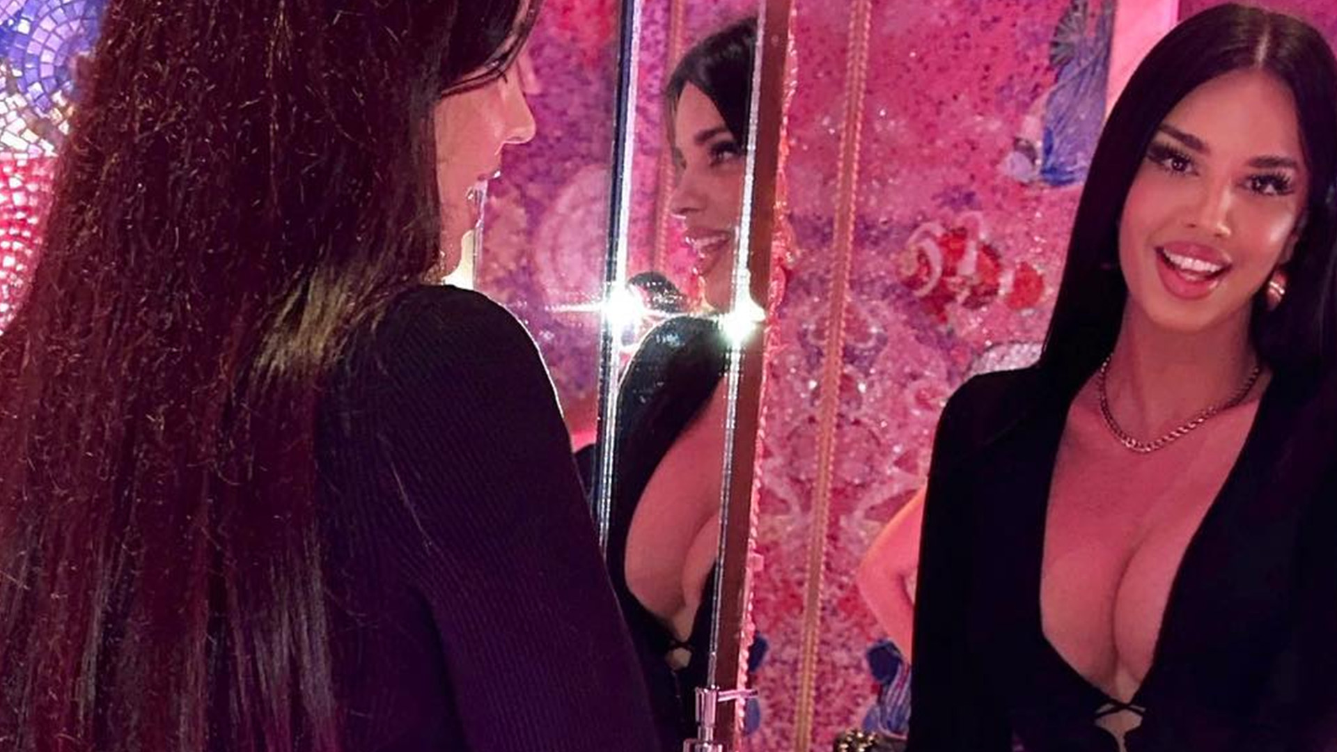 ظهرت إيفانا بجمبسوت أسود يكشف منحنيات جسدها المثير، ووقفت أمام المرآة.