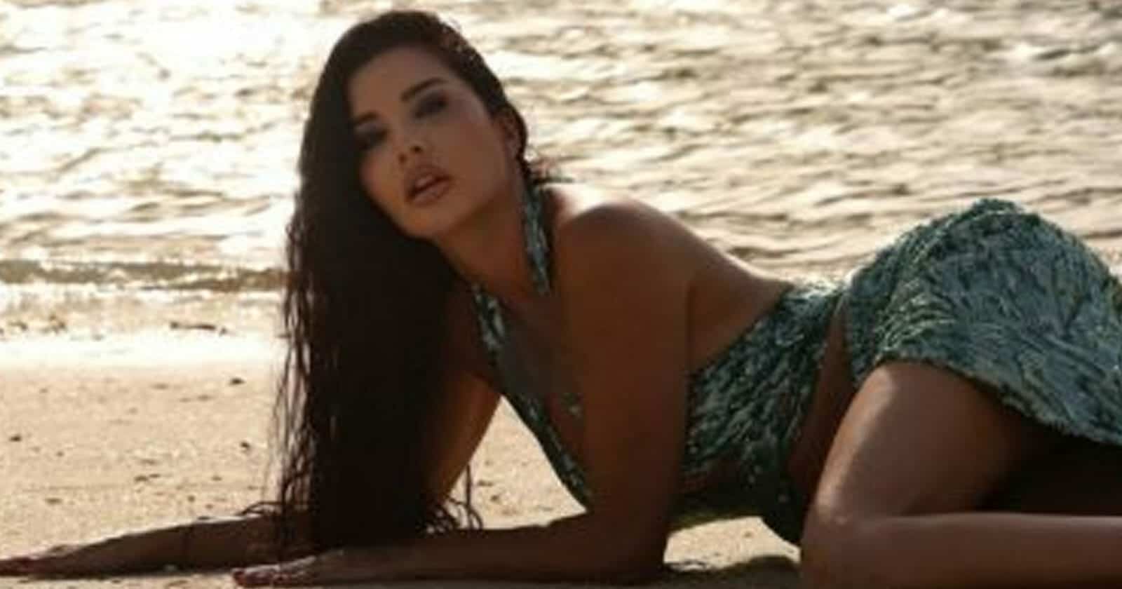 بينما ظهرت في صور أخرى وهي على الرمال في دبي، وتستعرض بملابس جريئة.