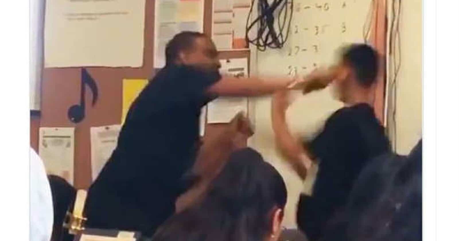 وطن- انفعل معلم في الولايات المتحدة، على طالب ظلّ يخاطبه أمام بقية الطلبة بطريقة وُصفت بأنها مهينة، فردّ المعلم بضرب الطالب بعنف شديد ليدافع عن كرامته.