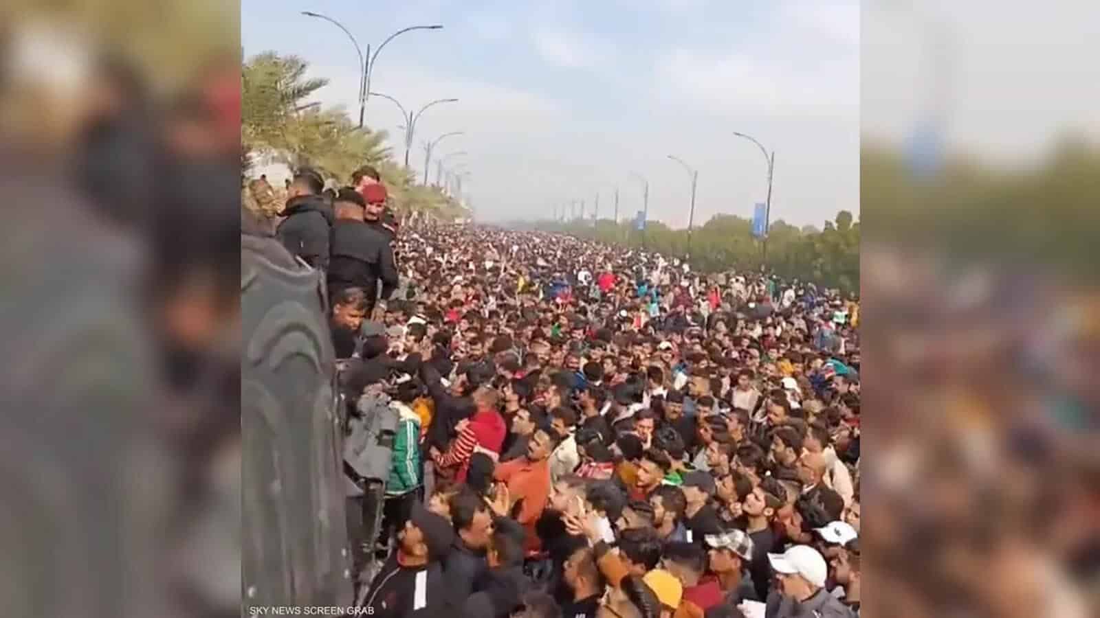 الحشود تجتاح بوابة من بوابات ملعب #جذع_النخلة بـ #البصرة في #العراق