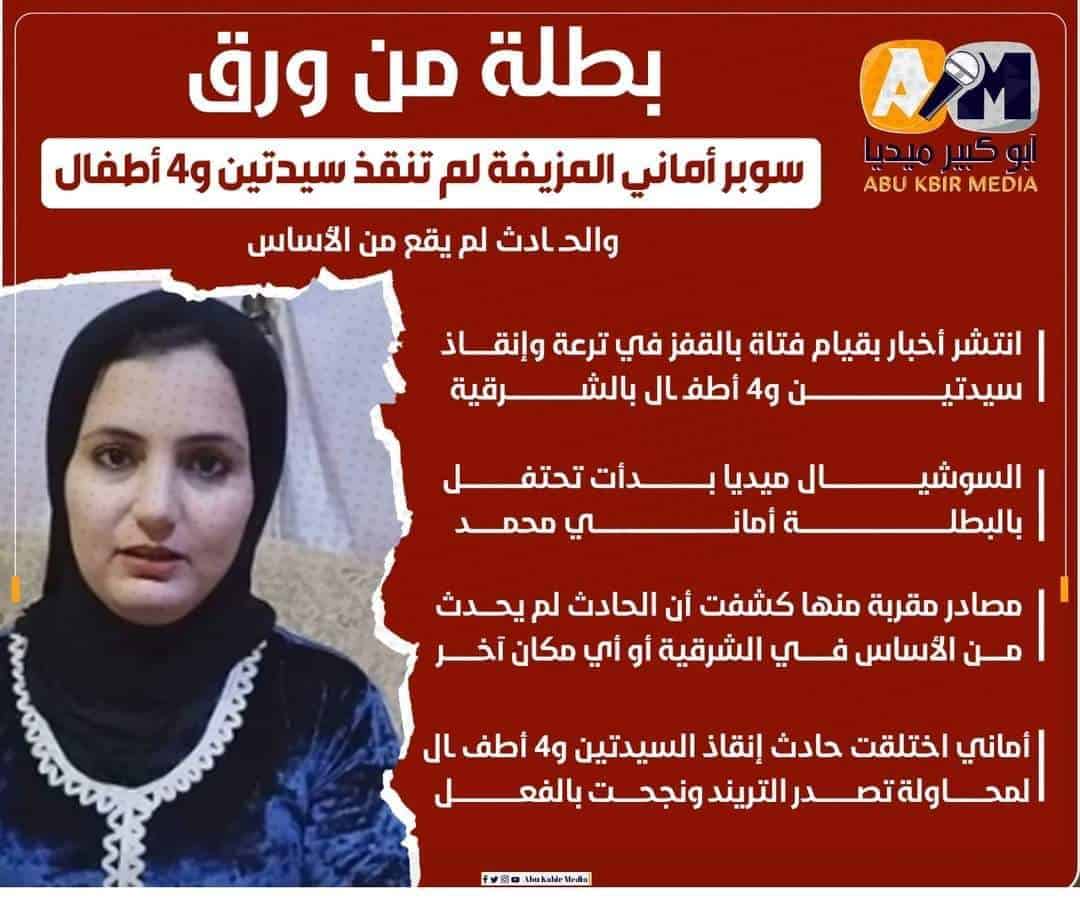 وطن– أثيرت حالة من الجدل في مصر، بعد تردد أنباء عن سيدة تُدعى أماني محمد، تدخلت بشجاعة لا تصدَّق بعد سقوط سيارة سقطت في المياه وبداخلها سيدتان وأربعة أطفال، فيما تم الحديث عن كذب تلك الرواية، وأن ترويجها كان بقصد الشهرة.