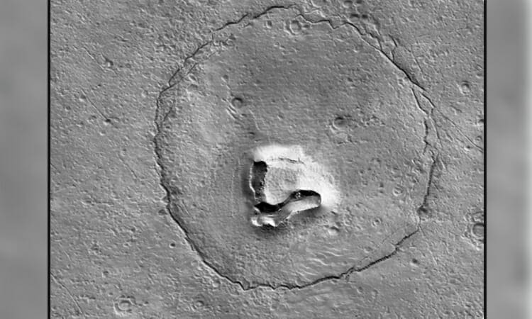 وطن– التقطت مركبة مدارية تابعة لوكالة الفضاء الأمريكية (ناسا) من على ارتفاع 155 ميلاً فوق سطح المريخ صورة على ما يبدو أنها وجه دب ضخم يشبه وجه الدب بادينغتون، “Paddington “، وهو شخصية خيالية كلاسيكية محبوبة في المملكة المتحدة.