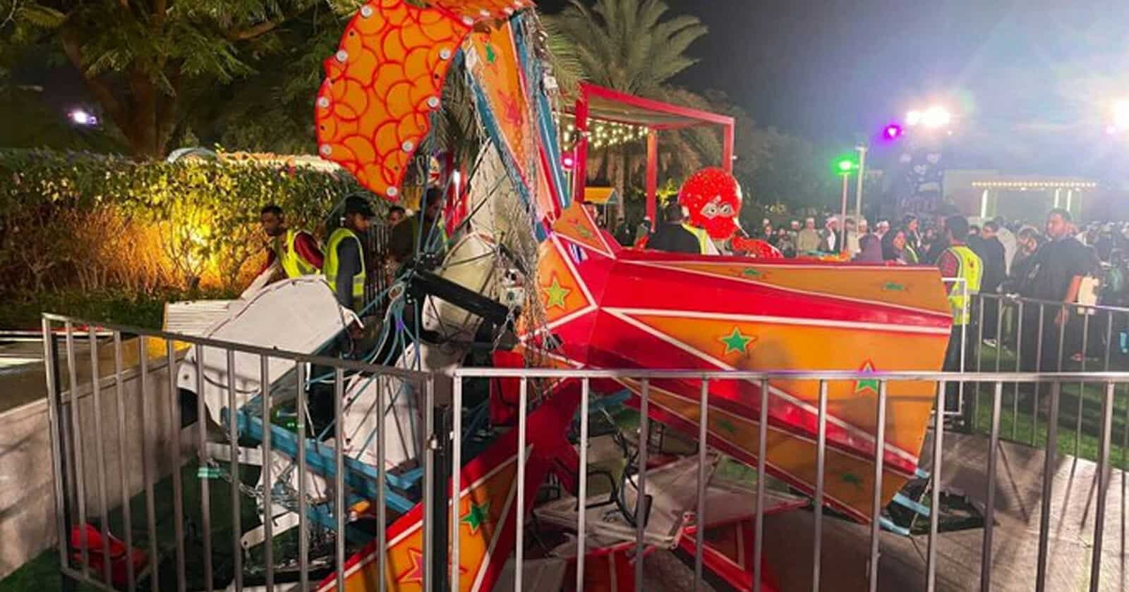 ووسط دهشة وهلع الحضور، تداعت الأرجوحة الدوارة لتسقط أرضاً، بينما كانت تحمل عدداً من الأطفال على متنها، في حادثة دفعت السلطات الرسمية لتوضيح مجرياتها.