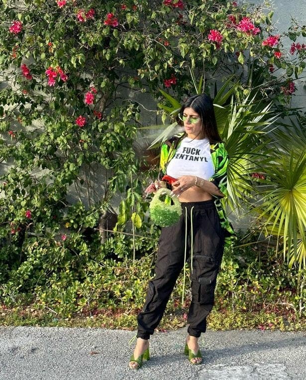 وطن– نشرت الممثلة الإباحية السابقة ميا خليفة سلسلة من اللقطات مرتدية قميصًا كتب عليه: “اللعنة على الفنتانيل”.