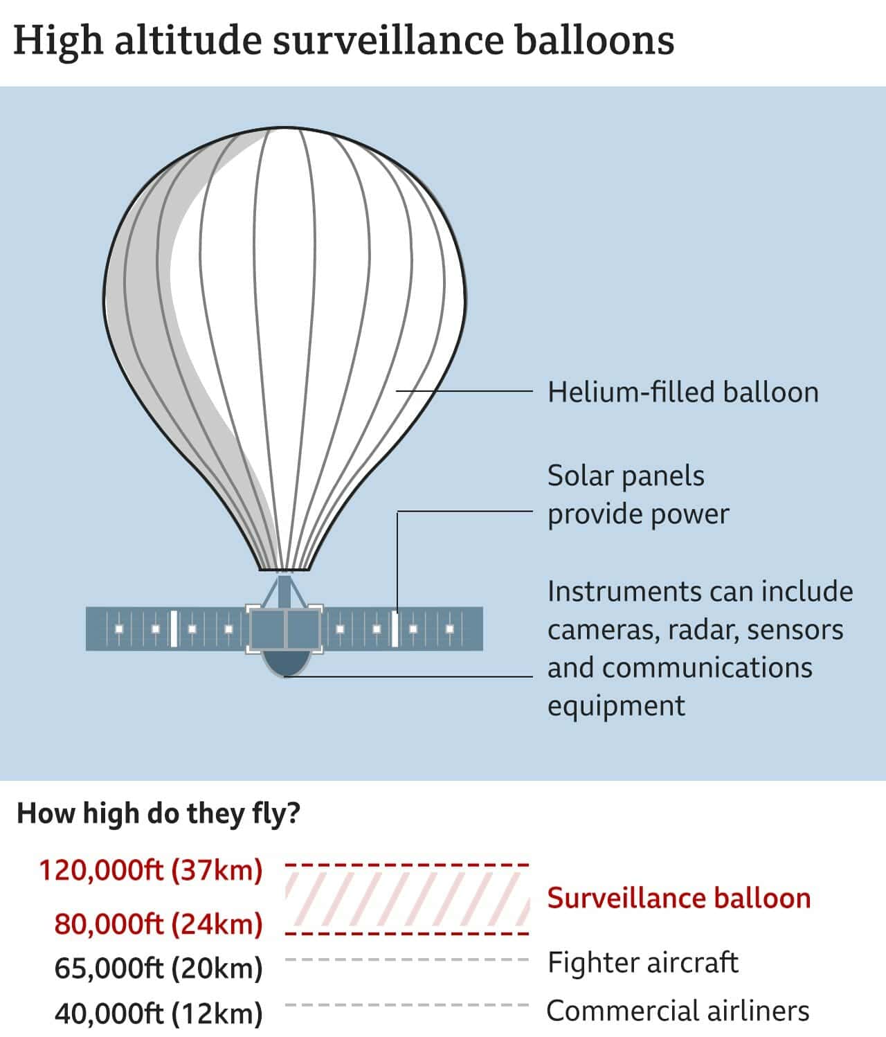 كشفت هيئة الإذاعة البريطانية BBC أن السلطات في الولايات المتحدة تتعقب منذ أيام، بالون مراقبة صيني مشتبه به تم رصده وهو يحلق فوق مواقع حساسة.