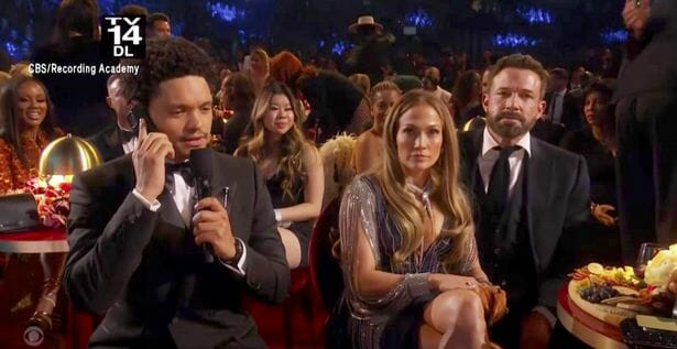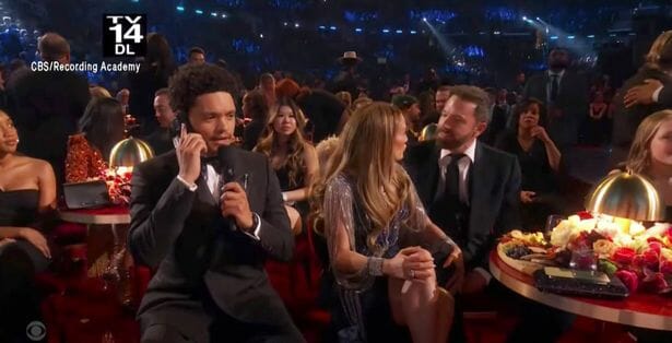 لم يكن لدى الزوجين أي فكرة عن أن عيون العالم كانت عليهما في ذلك الوقت. حيث جلس المضيف تريفور نوح بالقرب منه، متظاهرًا بأنه على الهاتف في المنزل يتحدث عن جرامي.