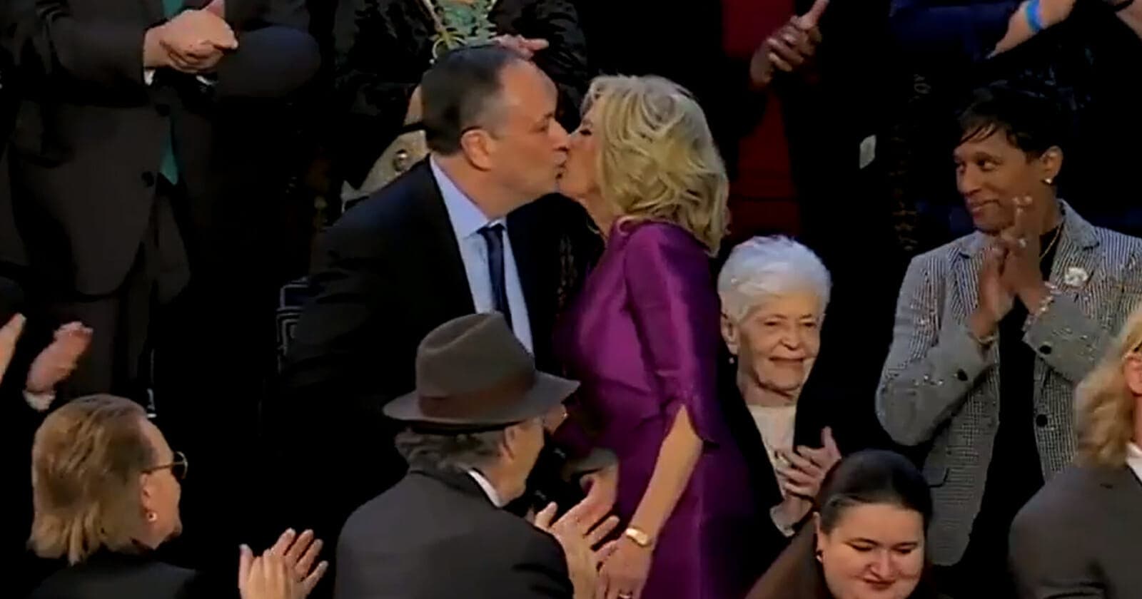 Jill Biden just kissed Kamala Harris’ husband on the lips.