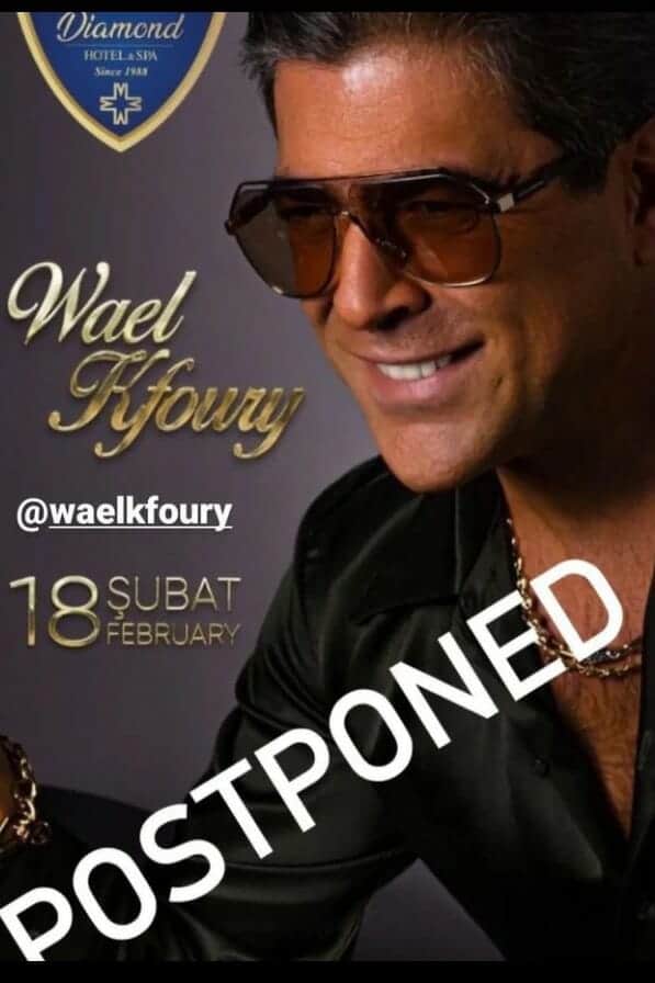 أيضا قام وائل كفوري بتأجيل حفله المقرر إقامته يوم 18 فبراير الجاري، في قبرص بتركيا.
