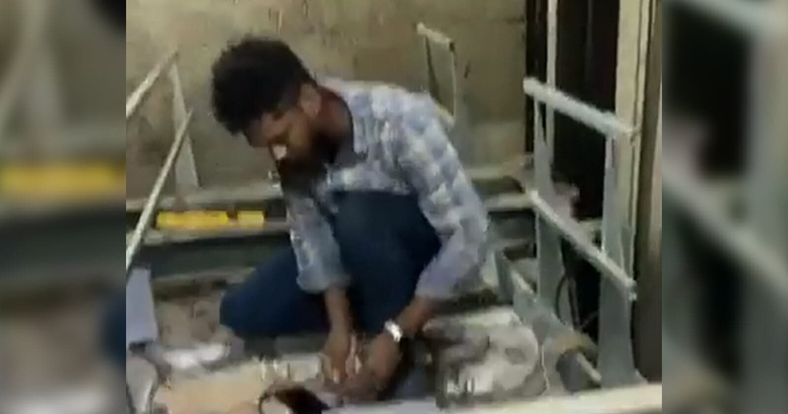وحاول العاملون في المستشفى رفع المصعد لكي يتمكنوا من إخراج المريض من أسفله، بحسب ما ظهر بالفيديو.