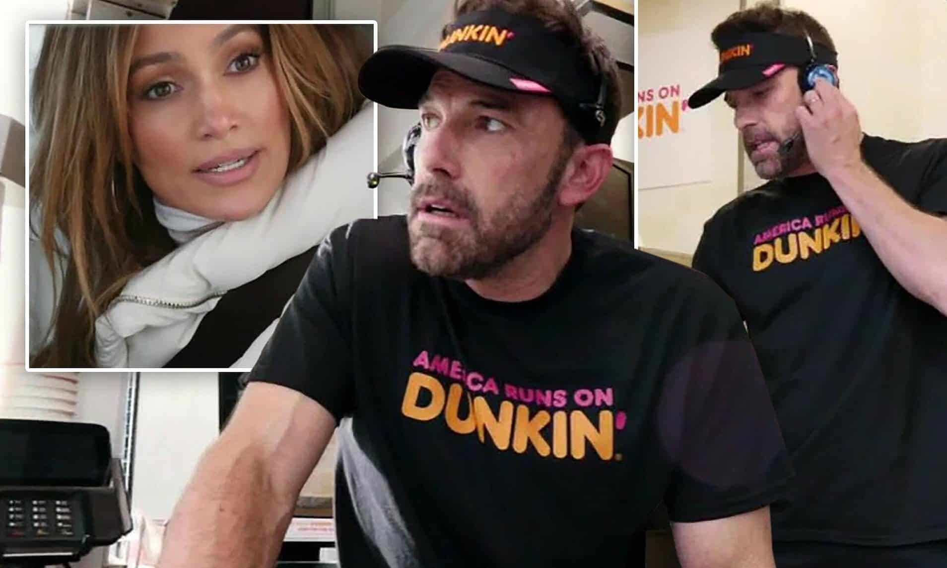 بدت لوبيز رائعة كما كانت دائمًا ، مرتدية سترة بيضاء منفوخة وهي تتجه نحو النافذة. وفي الوقت نفسه ، كان بن بمثابة الموظف المثالي في دانكن ، حيث كان يرتدي قميصًا يحمل شعاره وقبعة واقية مطابقة.