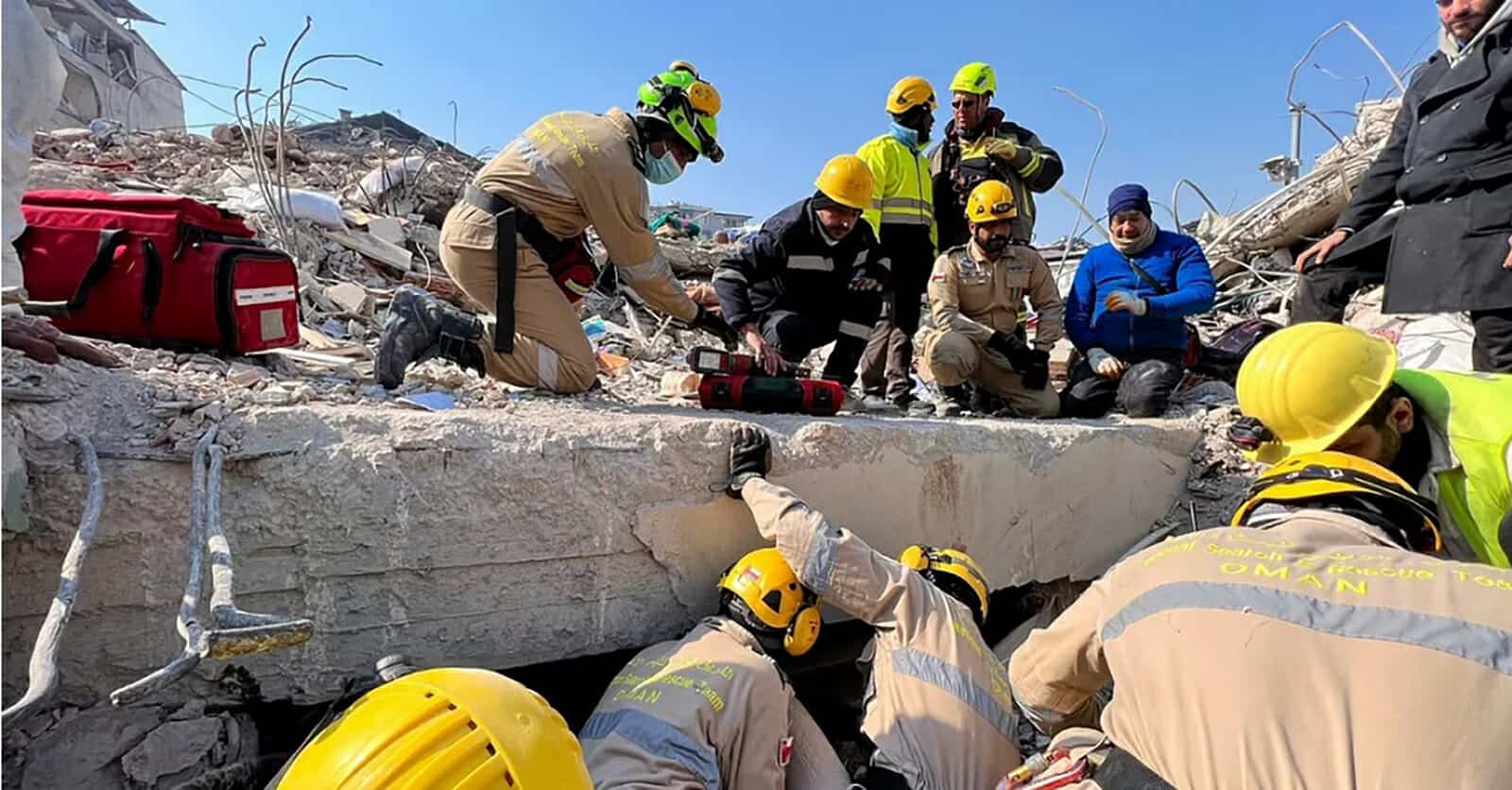 فريق الإنقاذ العماني ينجح في انتشال أشخاص أحياء من تحت أنقاض المنازل التي هدمها زلزال تركيا