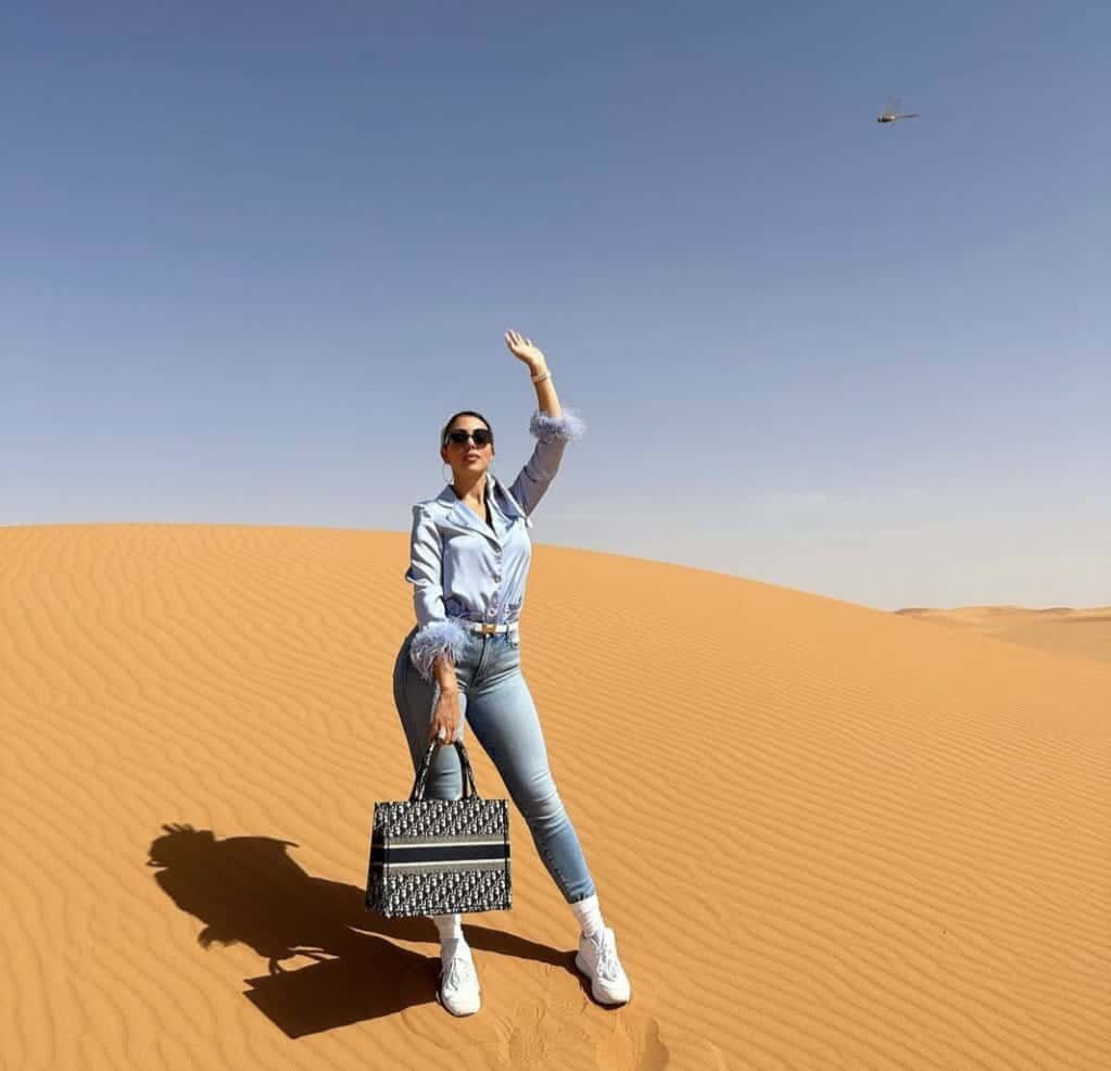 ونشرت ريما العنزي الملقبة بـ”شبيهة جورجينا السعودية”، صوراً لها في الصحراء وهي ترتدي نفس ملابس صديقة رنالدو.