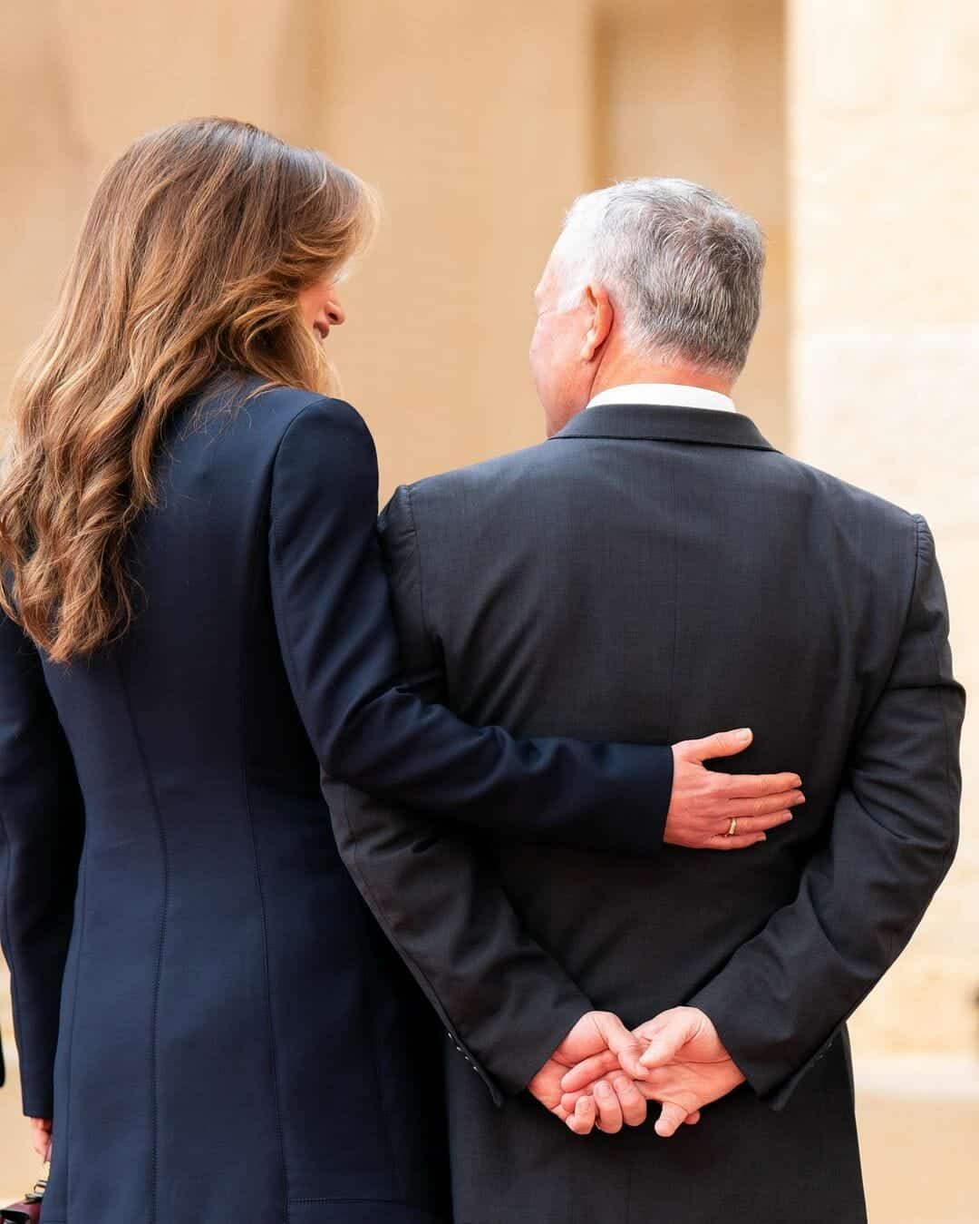 وضع الملك عبد الله يده على ظهرها، وأرشد زوجته خلال زيارتهما إلى أبو ظبي في نوفمبر 2021.