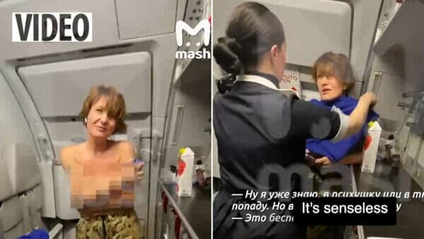 حاولت أنزيليكا موسكفيتينا، البالغة من العمر 49 عامًا، اقتحام قمرة القيادة لرؤية الطيارين عندما اكتشفتها إحدى المضيفات وهي تدخن سيجارتها في مرحاض طائرة. ولكن ليس قبل أن تكشف صدرها بطريقة فاضحة أمام الركاب الآخرين، بما في ذلك الأطفال.